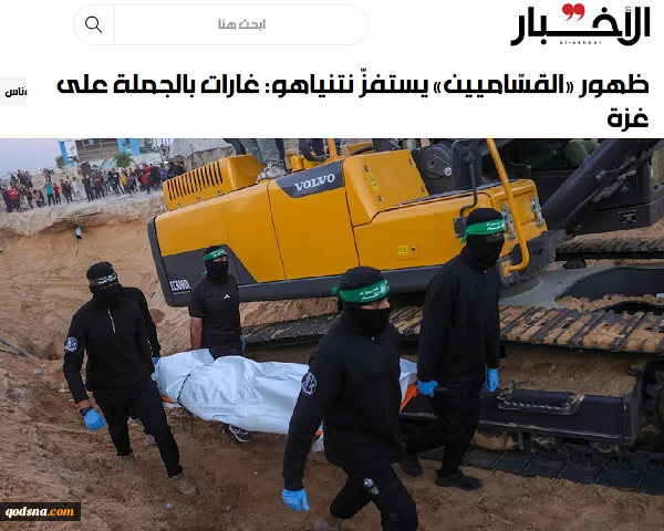 یک روزنامه لبنانی در گزارشی با اشاره به انتشار تصاویر حضور مبارزان قسام در جریان عملیات جستجو برای یافتن اجساد اسرای صهیونیست، نوشت: حضور علنی و منظم اعضای گردانهای قسام، روایت نتانیاهو مبنی بر حذف حماس را تضعیف میکند.