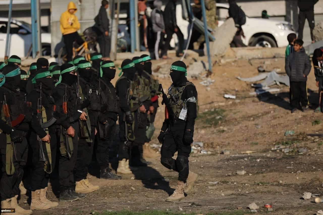 حضور قدرتمند گردان های قسام در خان یونس در جریان آزادی دو اسیر صهیونیستی به صلیب سرخ به عنوان بخشی از توافق طوفان احرار