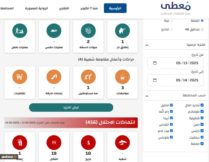 امتیاز دهید : مرکز پژوهشی معطی منتشر کرد؛ 7 عملیات مقاومتی در کرانه باختری در 24 ساعت اخیر+ نمودار 2 یکشنبه 28 اردیبهشت 1404 ساعت 17:12