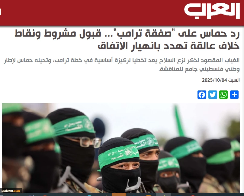 امتیاز دهید : روزنامه العرب بررسی کرد؛ پاسخ حماس به طرح آتش بس ترامپ؛ از پذیرش مشروط تا مفاد معلق مانده 2 شنبه 12 مهر 1404 ساعت 16:23