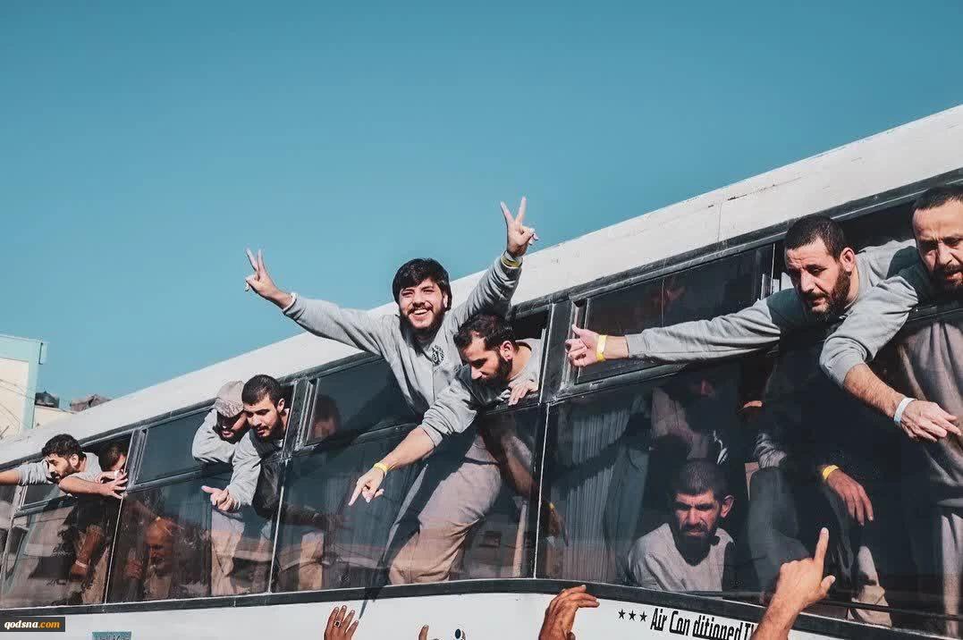 لحظه رسیدن اسرای آزاد شده فلسطینی به غزه 7