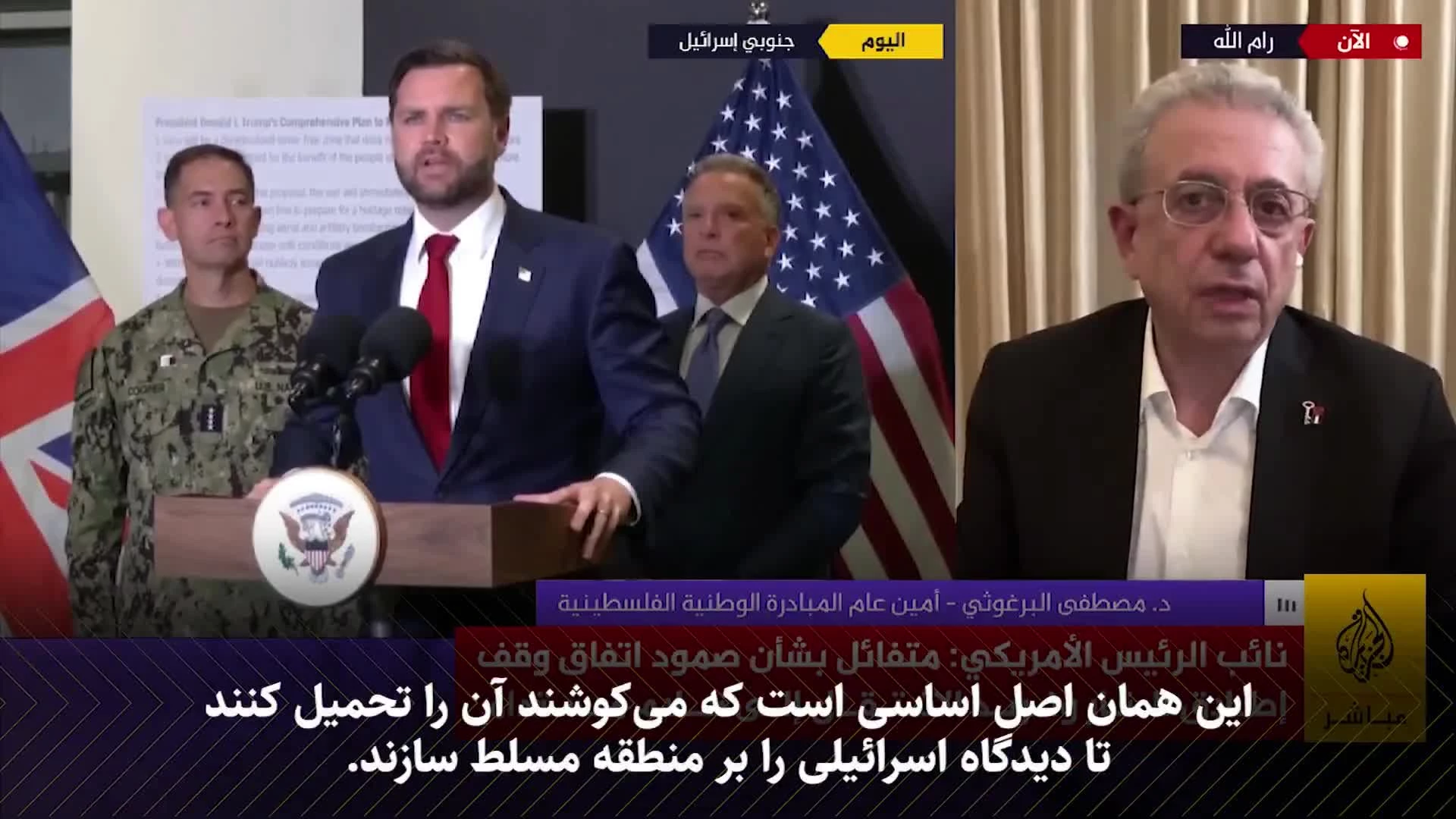 مصطفی البرغوثی دبیرکل جنبش «ابتکار ملی فلسطین» و کارشناس الجزیره: سخن نتانیاهو در پاسخ به پرسشی درباره طرح «اسرائیل بزرگ» کافی است تا همه بفهمند که هیچ کشوری در این منطقه از شر این متجاوز اسرائیلی در امان نیست . ???? اگر قرار باشد بحث خلع سلاح حماس صورت گیرد، باید پرسش‌های دیگری از سوی فلسطینی‌ها مطرح شود، مثلاً چرا سلاح شهرک‌نشینان در کرانه‌ی باختری جمع‌آوری نمی‌شود؟ به چه حقی این شهرک‌نشینانِ تروریست با سلاح آزادانه در رفت‌وآمدند و هر روز به مردم حمله می‌کنند؟ ????وقتی سخن از خلع سلاح در منطقه‌ای به میان می‌آید، چرا از خلع سلاح ارتش رژیم صهیونیستی در مرزها سخنی نمی‌گویند؟ چگونه می‌خواهیم وارد مرحله‌ دوم توافق شویم در حالی‌که اسرائیل هنوز مرحله‌ی اول را اجرا نکرده است؟"