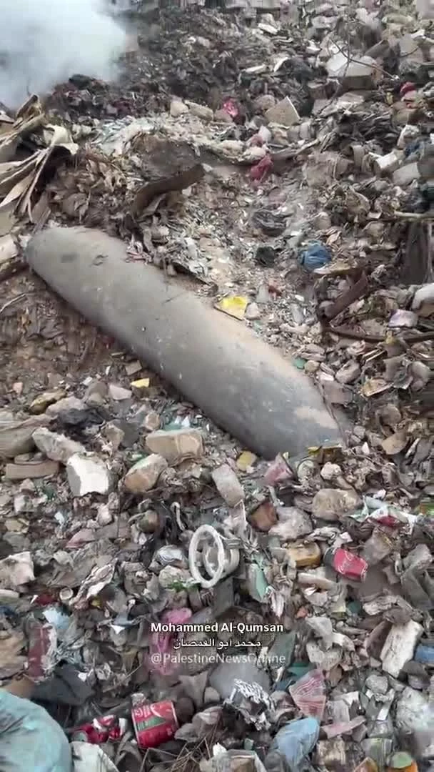 کودکان غزه در میان زبالهها مشغول بازی هستند، در حالی که یک بمب عمل نکرده از مهمات باقیمانده از نیروهای اشغالگر صهیونیست در کنار آنان قرار دارد. این مهمات منفجرنشده، جان کودکان و ساکنان محلی را به طور جدی تهدید میکند. همچنین این حجم انباشت زباله، از نظر بهداشتی جان کودکان و مردم غزه را تهدید میکند.