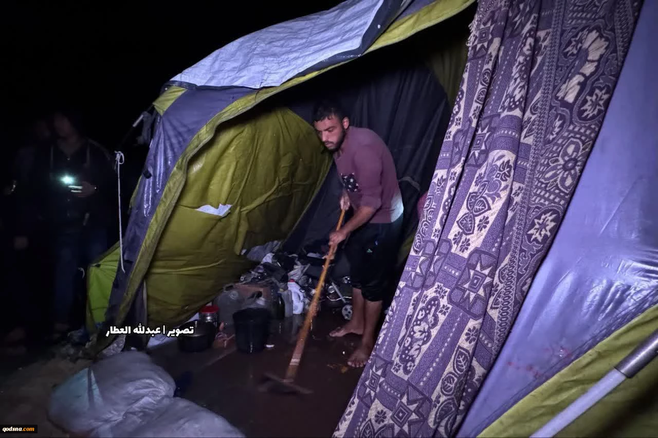 سیل و باران شدید، خیمه‌های آوارگان فلسطینی را در خان یونس در جنوب نوار غزه در خود فرو برد 3
