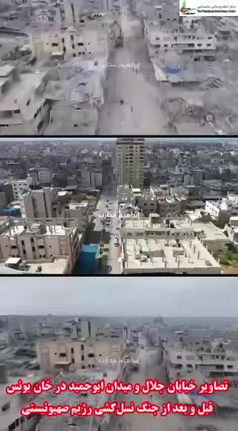 تصاویر خیابان جلال و میدان ابوحمید در خان‌ یونس قبل و بعد از جنگ نسل‌کشی رژیم صهیونیستی