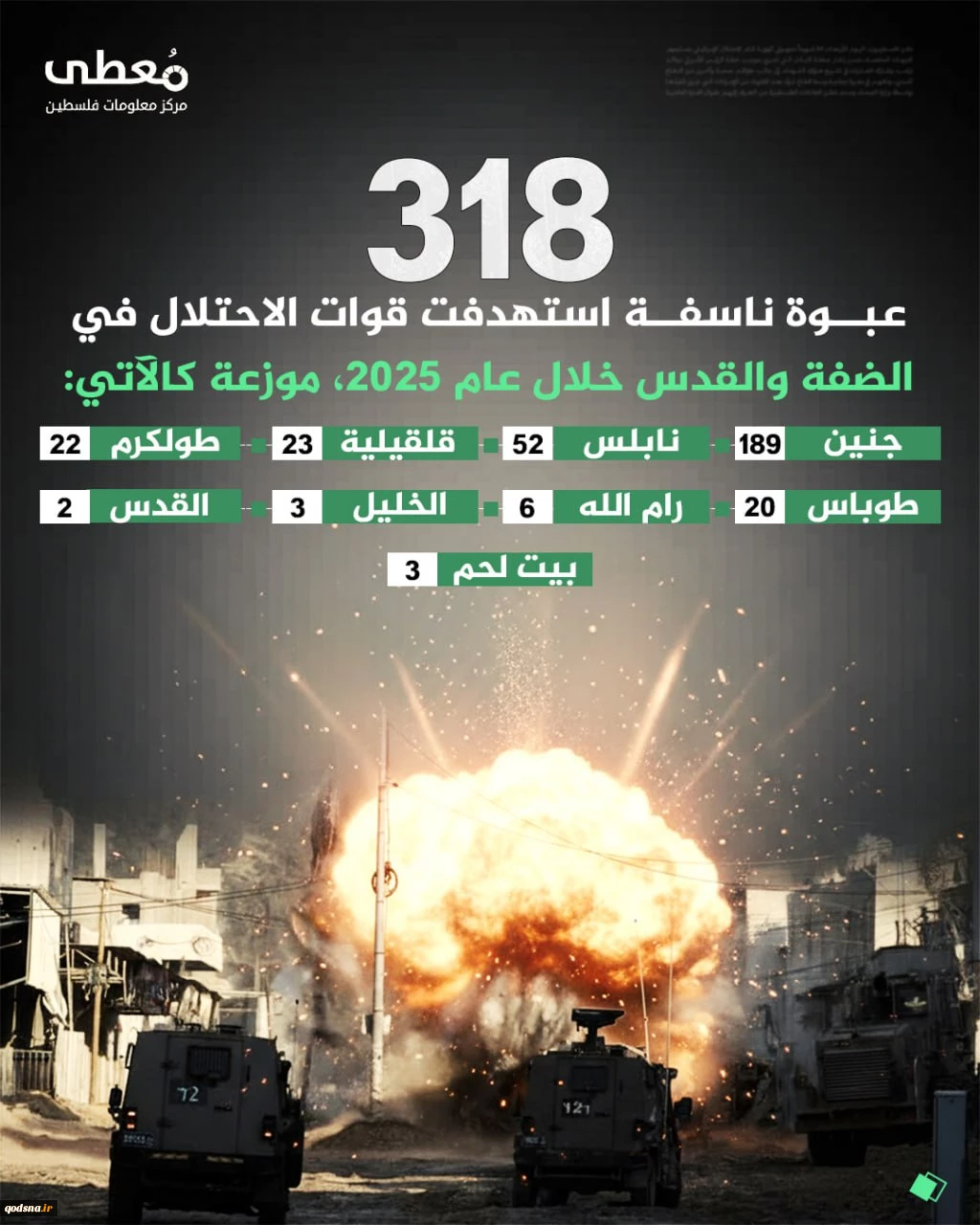 امتیاز دهید : فلسطین در سال 2025 از دریچه آمار و ارقام؛ بیش از 4000 عملیات مقاومتی در کرانه باختری/ از تشدید تعرضات علیه مسجدالاقصی تا ریختن 112 هزار تن بمب روی غزه 10 سهشنبه 16 دی 1404 ساعت 15:05